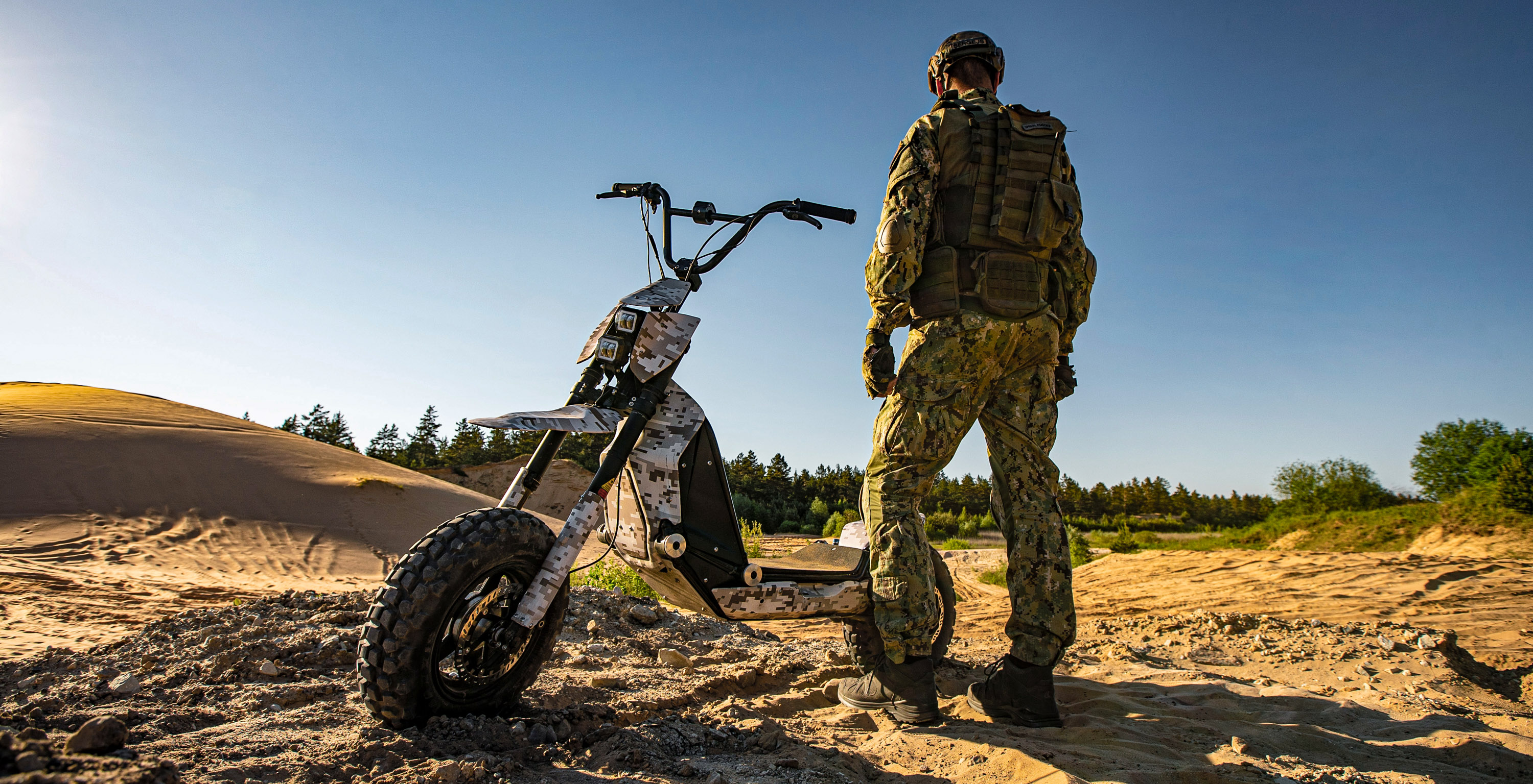 When co-founders Henrijs Bukavs and Klavs Asmanis first went to talk to Latvia’s armed forces, they were indeed met with skepticism—a military scooter, officials implied, didn’t make much sense—and a wall of bureaucracy. They found that no matter how good your pitch or how glossy your promo video (and Global Wolf’s promo is glossy: a slick montage of scooters jumping, climbing, and speeding in formation through woodlands and deserts), getting into military supply chains meant navigating layer upon layer of officialdom.