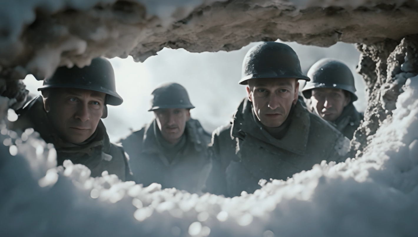 “Somme Requiem” depicts snowbound soldiers during the World War I Christmas ceasefire in 1914. The film is made up of dozens of different shots that were produced using a generative video model from Runway, then stitched together, color-corrected, and set to music by human video editors at Myles. “The future of storytelling will be a hybrid workflow,” says founder and CEO Josh Kahn.