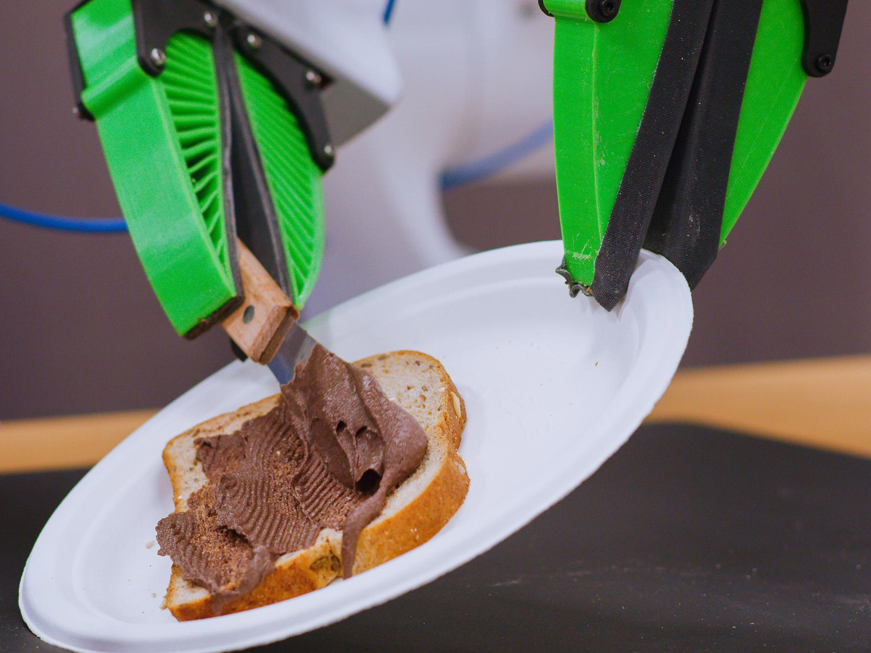 Mechanically, we’ve been able to do fairly complex things for a while. In a video from 1957, two large robotic arms are dexterous enough to pinch a cigarette, place it in the mouth of a woman at a typewriter, and reapply her lipstick. But the intelligence and the spatial awareness of that robot came from the person who was operating it.